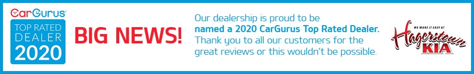 Here at Hagerstown Kia, we're honored to receive CarGurus 2020 Top Rated Dealer award! We've always worked to put our customers first here at our dealership, and we're proud of our dedication to excellent customer service. Delivering a positive dealership experience is one of our top goals, and we're beyond delighted to have earned recognition from CarGurus for our ongoing efforts to serve our customers and community.
