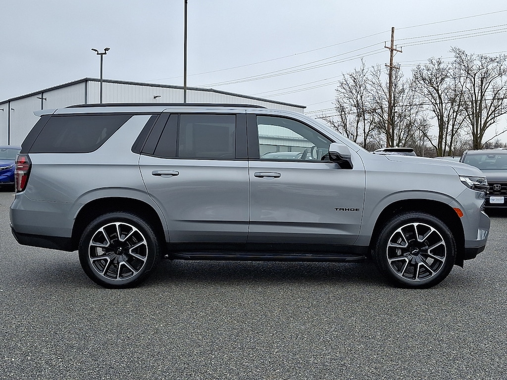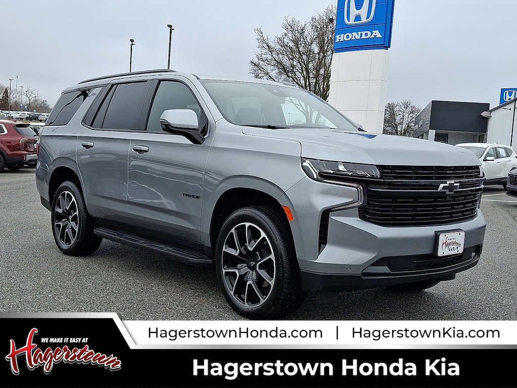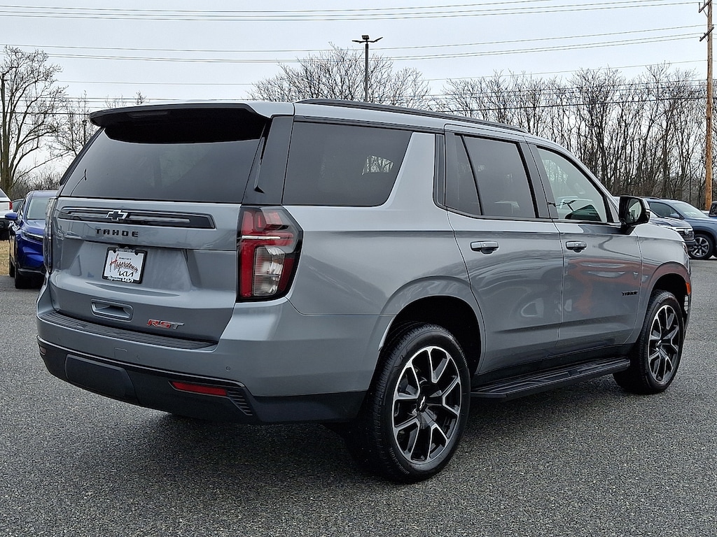 2024 Chevrolet Tahoe RST Sterling Gray Metallic RST MD STATE INSPECTED, ONE OWNER, LOCAL TRADE IN, Freshly Inspected!!!, ALLOY WHEELS, *LEATHER INTERIOR, HEATED SEATS, BLUETOOTH, APPLE CARPLAY / ANDROID AUTO, HEATED STEERING WHEEL, DUAL CLIMATE ZONES, REAR CLIMATE CONTROL, ACTIVE LANE ASSIST, FORWARD COLLISION WARNING, BLIND SPOT MONITORING, ADAPTIVE CRUISE CONTROL, SPARE TIRE, AWD, POWER SEATS, RECENT TRADE, CLEAN CARFAX, POWER WINDOWS, 4WD, Jet Black/Victory Red Leather.