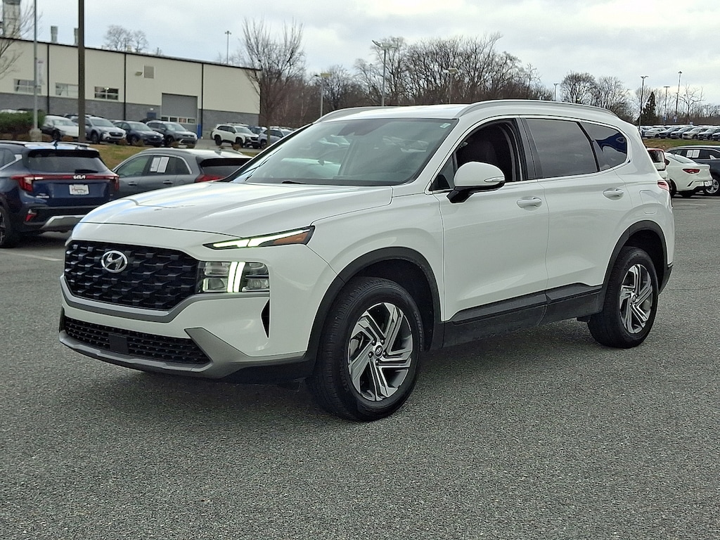 2023 Hyundai Santa Fe SEL Serenity White Pearl SEL MD STATE INSPECTED, ONE OWNER, LOCAL TRADE IN, Freshly Inspected!!!, ONE OWNER SOLD AND SERVICED SINCE IT WAS BUILT, ALLOY WHEELS, POWER LIFT GATE, REMOTE START, CLOTH INTERIOR, NAVIGATION, BLUETOOTH, APPLE CARPLAY / ANDROID AUTO, DUAL CLIMATE ZONES, ACTIVE LANE ASSIST, FORWARD COLLISION WARNING, BLIND SPOT MONITORING, ADAPTIVE CRUISE CONTROL, SPARE TIRE, RECENT TRADE, CLEAN CARFAX, POWER WINDOWS, AWD, Black Cloth.