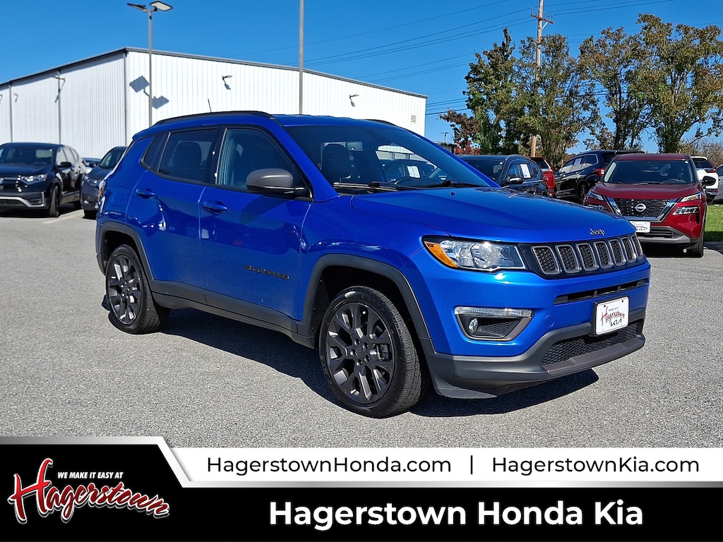 2021 Jeep Compass 80th Special Edition Laser Blue Pearlcoat 80th Special Edition MD STATE INSPECTED, LOCAL TRADE IN, Freshly Inspected!!!, ALLOY WHEELS, POWER LIFT GATE, FOG LIGHTS, REMOTE START, *LEATHER INTERIOR, NAVIGATION, BLUETOOTH, APPLE CARPLAY / ANDROID AUTO, SPARE TIRE, AWD, RECENT TRADE, CLEAN CARFAX, POWER WINDOWS, 4WD.