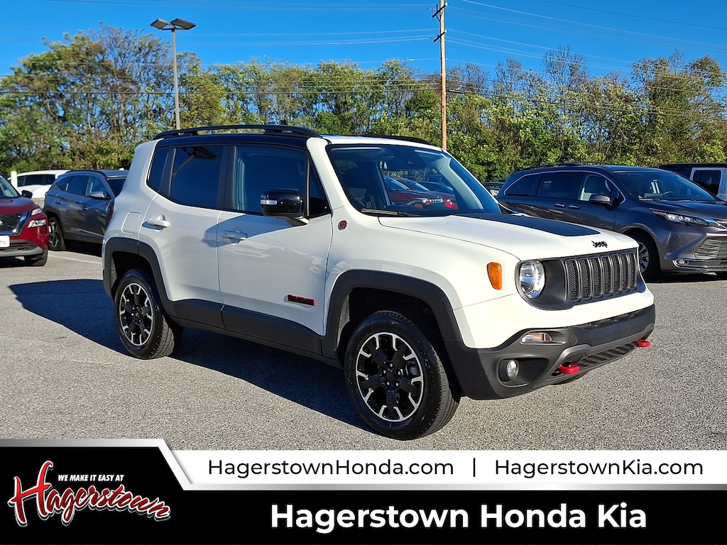 2023 Jeep Renegade Trailhawk Alpine White Clearcoat Trailhawk MD STATE INSPECTED, ONE OWNER, Freshly Inspected!!!, ONE OWNER SOLD AND SERVICED SINCE IT WAS BUILT, FOG LIGHTS, REMOTE START, CLOTH INTERIOR, NAVIGATION, BLUETOOTH, BLIND SPOT MONITORING, *4 WHEEL DRIVE, CLEAN CARFAX, POWER WINDOWS.