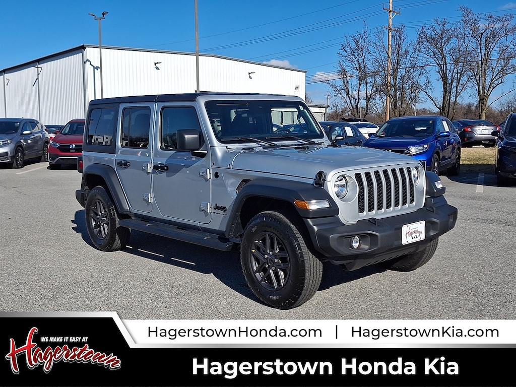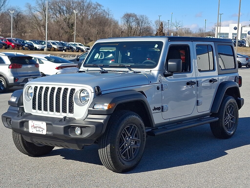 2024 Jeep Wrangler Sport S Silver Zynith Clearcoat Sport S MD STATE INSPECTED, ONE OWNER, LOCAL TRADE IN, Freshly Inspected!!!, ONE OWNER SOLD AND SERVICED SINCE IT WAS BUILT, ALLOY WHEELS, RUNNING BOARDS, FOG LIGHTS, REMOTE START, CLOTH INTERIOR, HEATED SEATS, BLUETOOTH, APPLE CARPLAY / ANDROID AUTO, HEATED STEERING WHEEL, DUAL CLIMATE ZONES, ACTIVE LANE ASSIST, FORWARD COLLISION WARNING, ADAPTIVE CRUISE CONTROL, AWD, RECENT TRADE, CLEAN CARFAX, POWER WINDOWS.