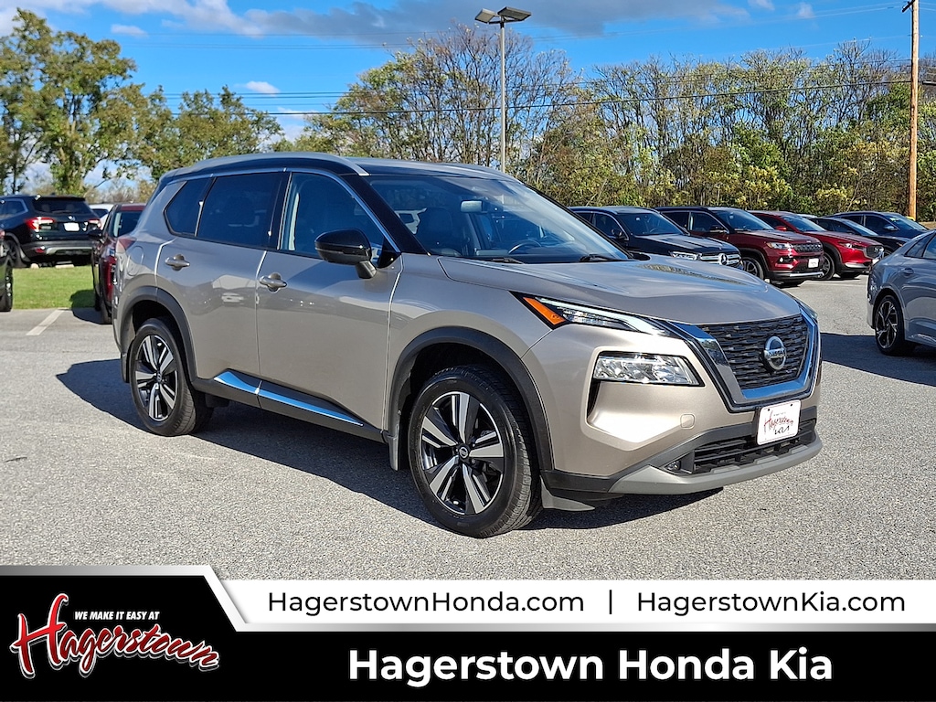 2021 Nissan Rogue SL Champagne Silver Metallic/Super Black SL MD STATE INSPECTED, ONE OWNER, LOCAL TRADE IN, Freshly Inspected!!!, ONE OWNER SOLD AND SERVICED SINCE IT WAS BUILT, *MOONROOF, ALLOY WHEELS, REMOTE START, *LEATHER INTERIOR, HEATED SEATS, BLUETOOTH, APPLE CARPLAY / ANDROID AUTO, ACTIVE LANE ASSIST, FORWARD COLLISION WARNING, BLIND SPOT MONITORING, ADAPTIVE CRUISE CONTROL, SPARE TIRE, AWD, RECENT TRADE, POWER WINDOWS, AWD.